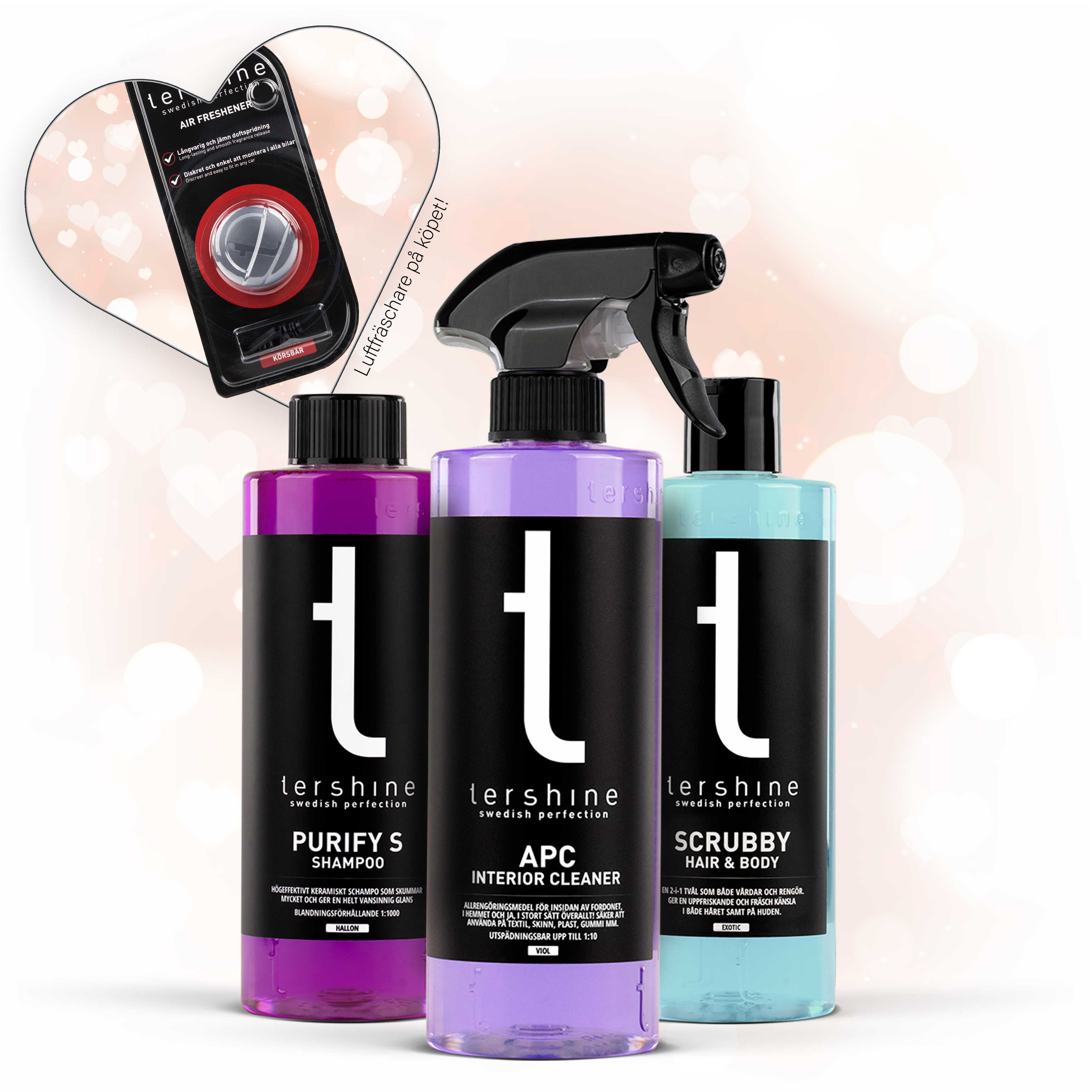 Ge någon du älskar ett kit för allt den älskar - insidan, utsidan och kroppen. Ett färdigt Alla hjärtans dag-paket där vi bjuder på en luftfräschare i valfri doft!