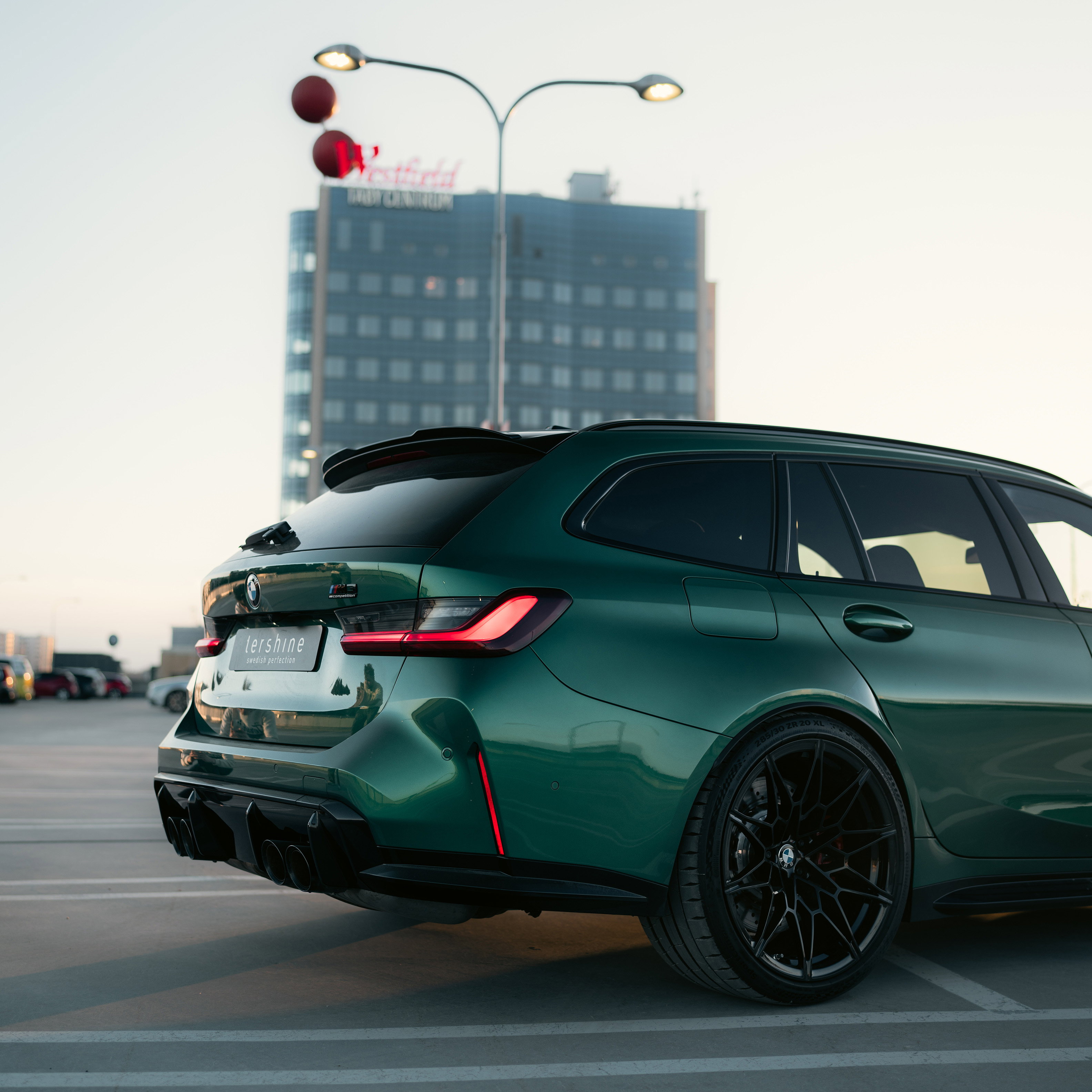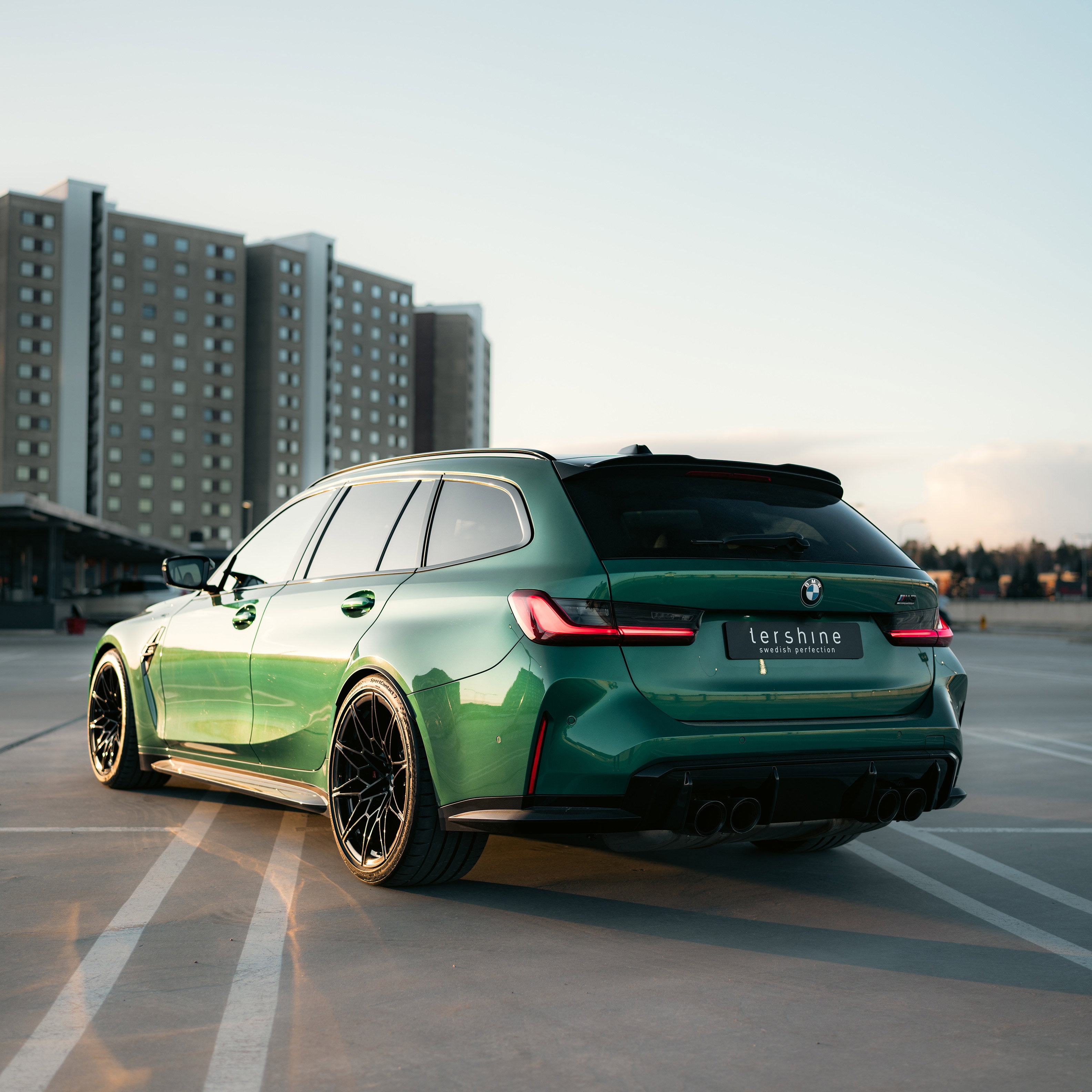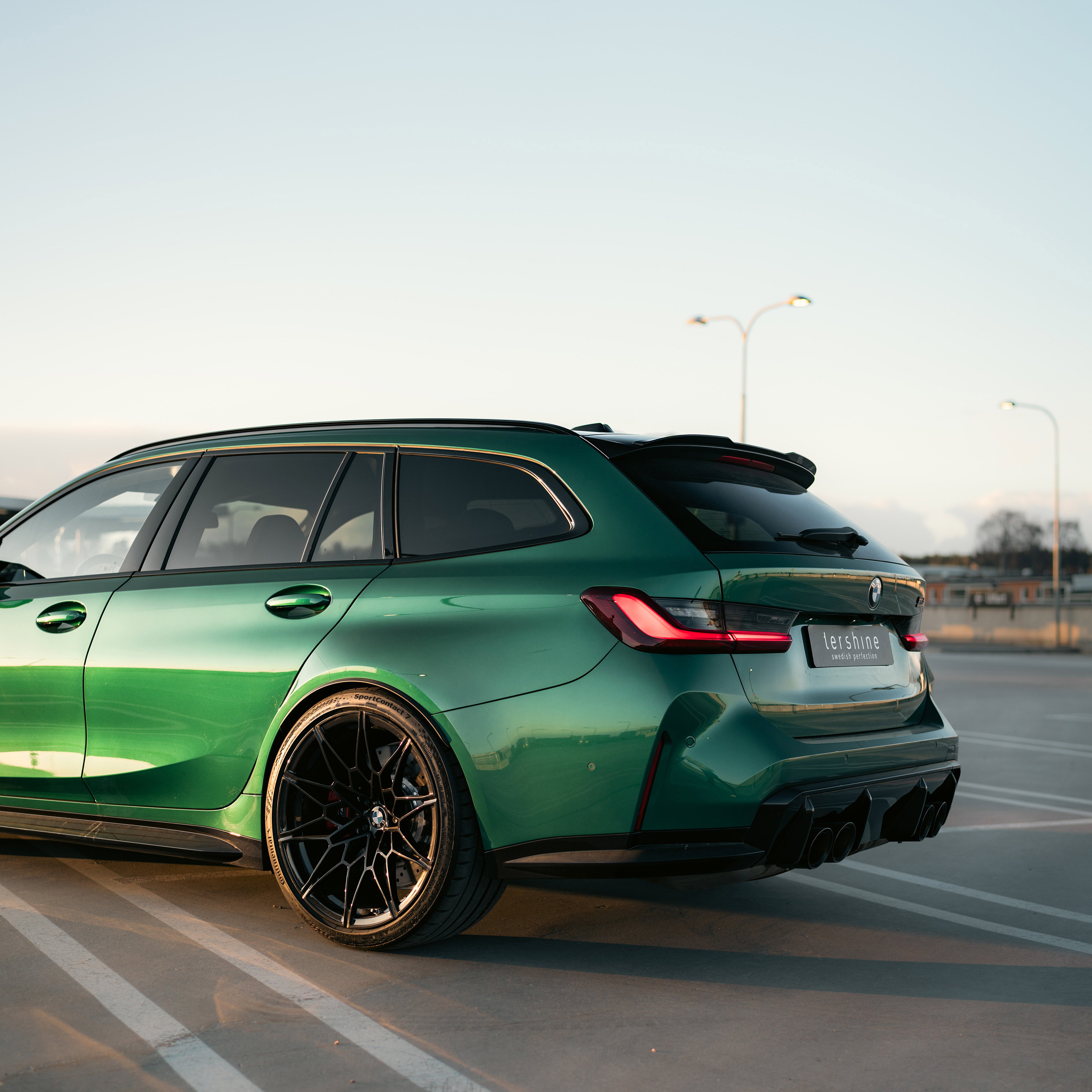 En svingrym Isle of Man-grön BMW M3 Touring från 2024 med strax över 500 mil på mätaren. Det innebär alltså att bilen fortfarande har nybilsgaranti!