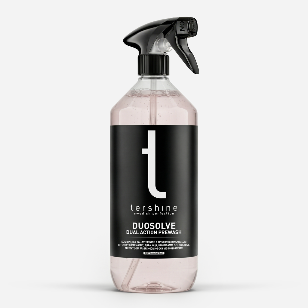 Duosolve kombinerar kallavfettning och flygrostborttagning. Löser asfalt, tjära, olja och bromsdamm – perfekt för effektiv förtvätt i ett steg.