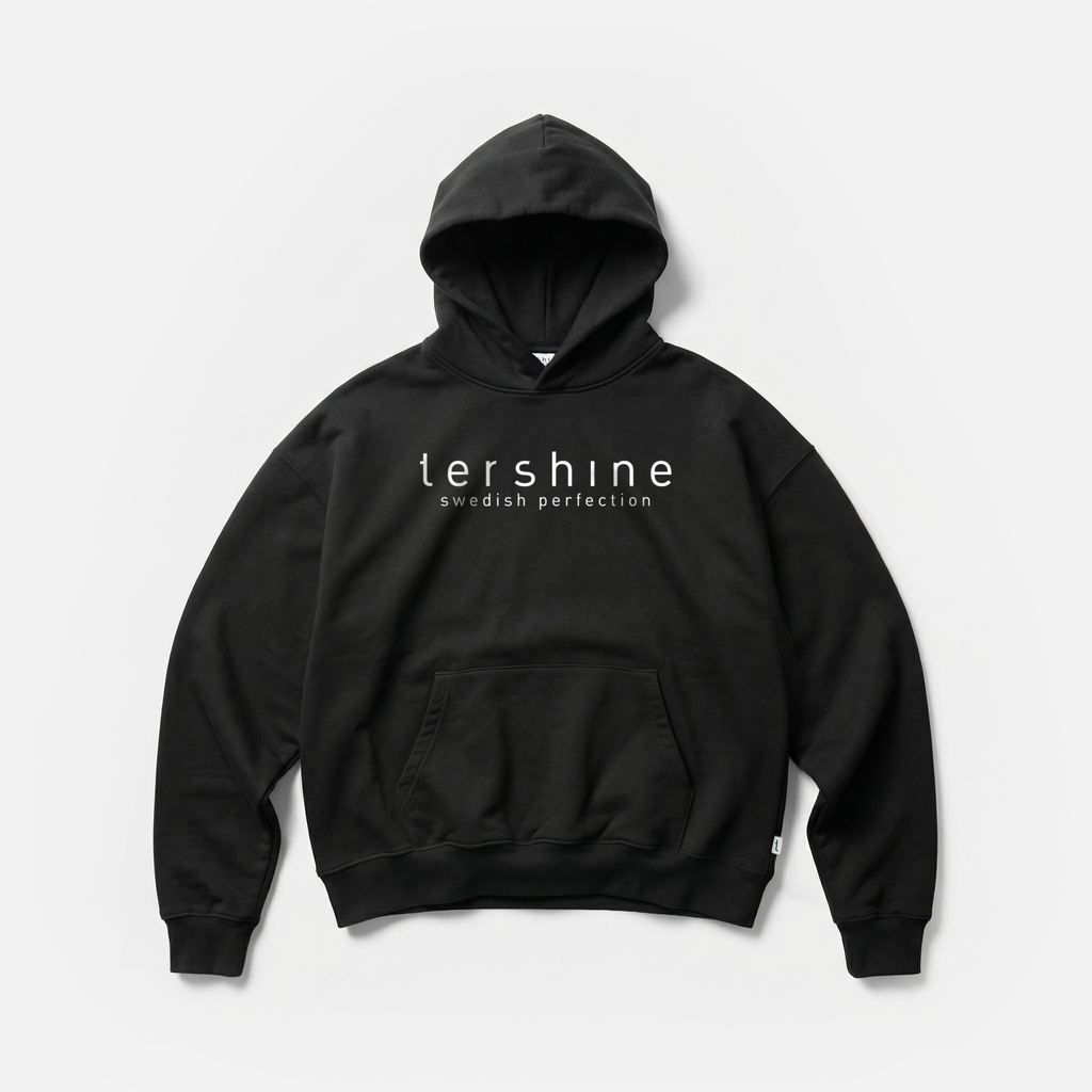 Vår helt egenutvecklade hoodie. Lutar lite åt oversized-hållet med droppade axelsömmar och stor, mysig luva. Finfin kvalitet, ca 340 gsm. Stor logga med 3d-puffy tryck över bröstet, och vävd tershine logga insydd på sidan