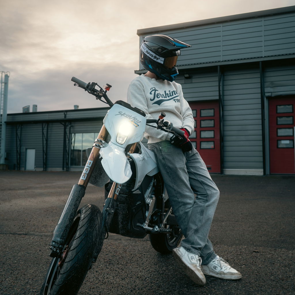 Vår helt egenutvecklade sweatshirt. Finfin kvalitet, ca 340 gsm. Stor brodyr- och tryckkombo över bröstet och vävd tershine logga insydd på sidan.